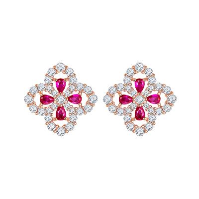 .925 Sterling Silver Lab-Grown Ruby Flower Shape Stud Earrings
