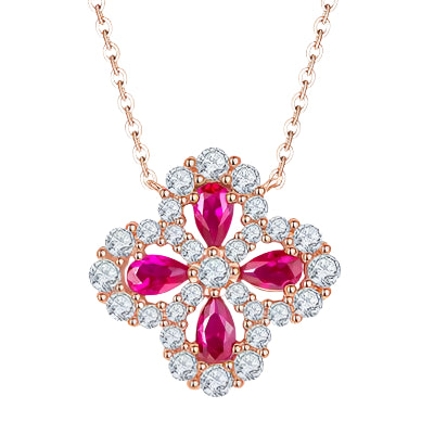 .925 Sterling Silver Lab-Grown Ruby Flower Shape Necklace