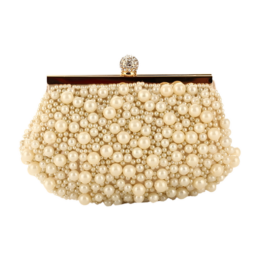 Dainty Round Pearl-Adorned Evening Bag in Silver or Gold