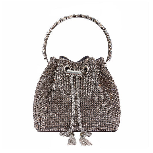 DJBM Women Full Diamonds Bucket Handbag Rhinestone Clutch Purse Evening Clutch for Women Party Prom Cocktail Wedding, Black