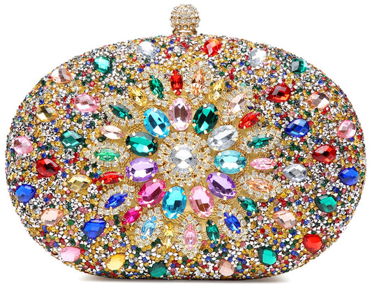 Beaguful Women's Evening Bags Sparkly Rhinestone Clutch Purses Luxury Handbags Oval Golden/Multicolor