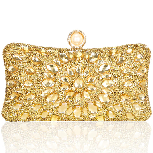 Beaguful Women's Evening Bags Sparkly Rhinestone Clutch Purses Luxury Handbags Golden