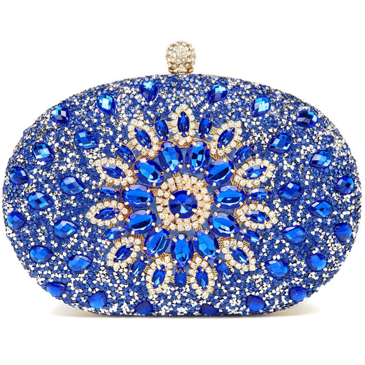 Beaguful Women's Evening Bags Sparkly Rhinestone Clutch Purses Luxury Handbags Oval Royal Blue