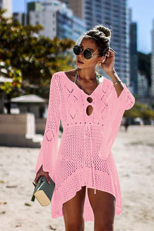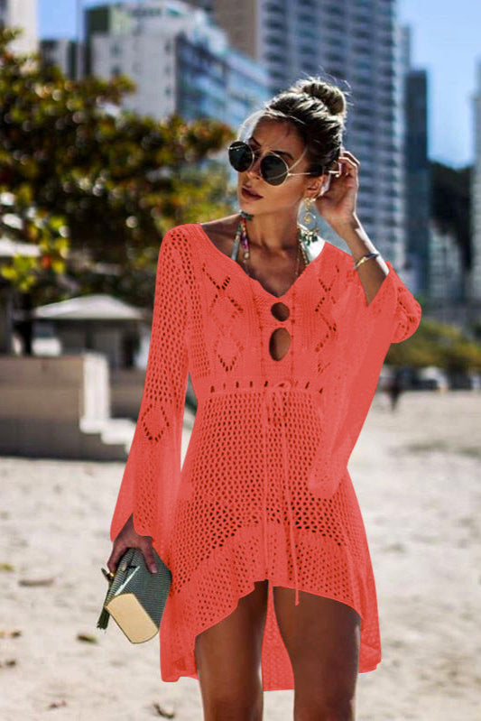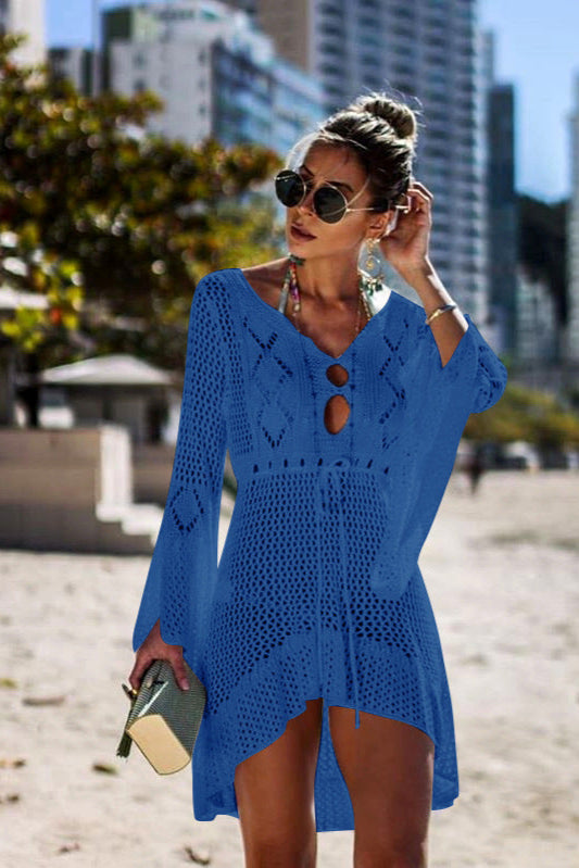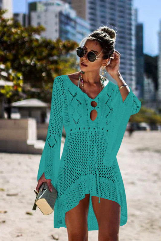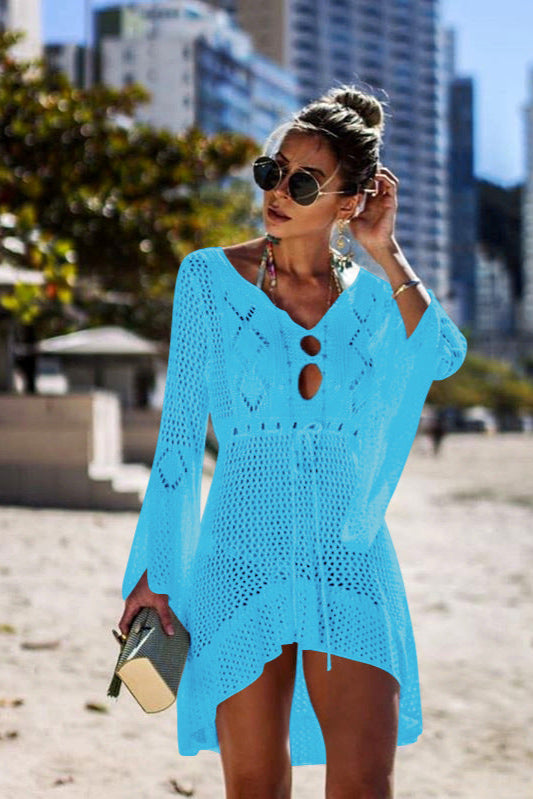 Airy, romantic, and designed to flatter, the Cinched Waist Lace Beach Bikini Cover-Up is your sun-ready staple for poolside lounging or seaside strolls. Featuring intricate lace patterns and a softly cinched waistline, this breezy piece defines the figure while maintaining a relaxed, carefree silhouette. The scalloped hem adds a feminine finish, while the drawstring neckline and half sleeves offer comfort and charm in equal measure.