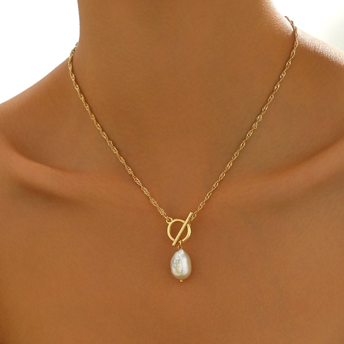 Stylish design: The gold chain and pearl pendant create a classic and elegant look.