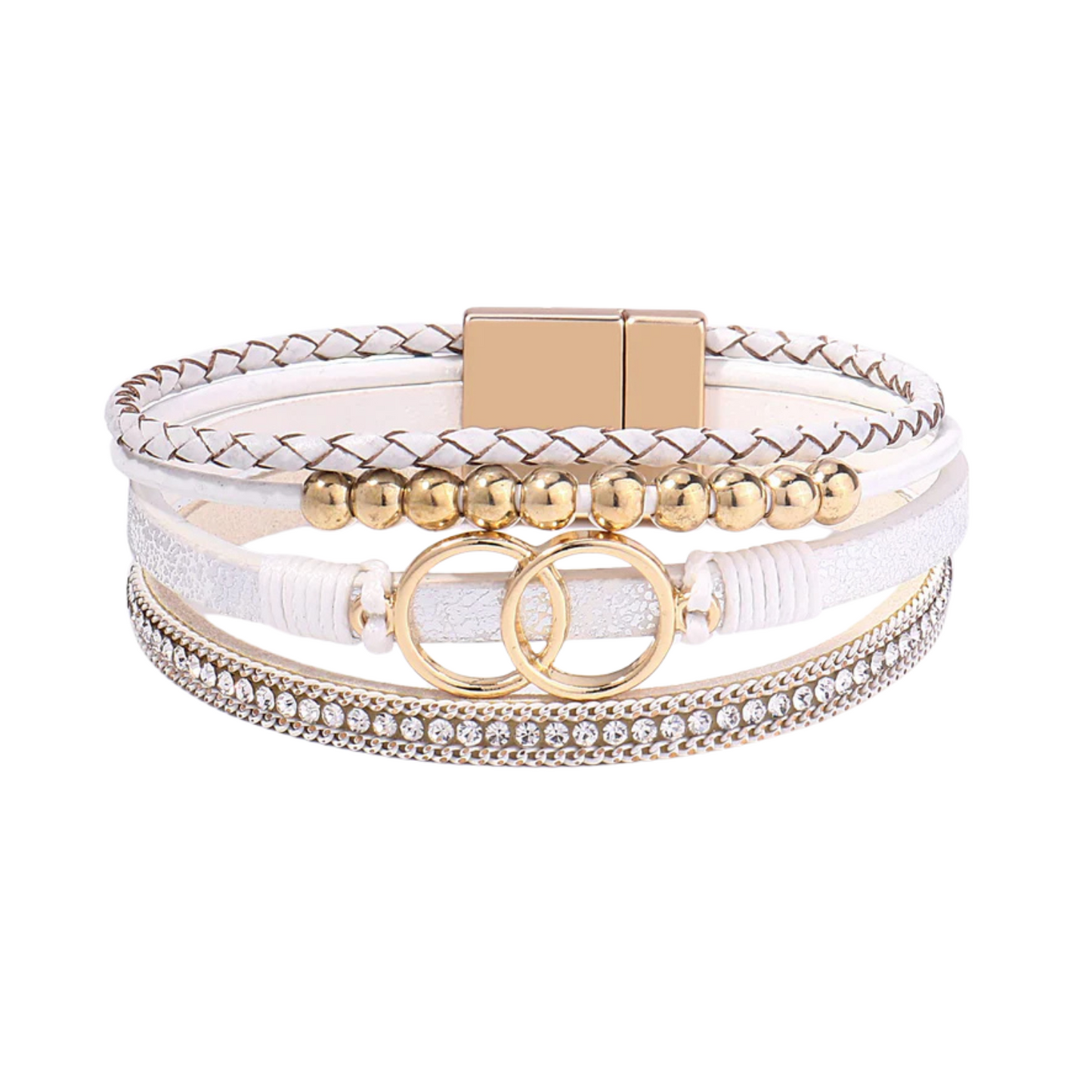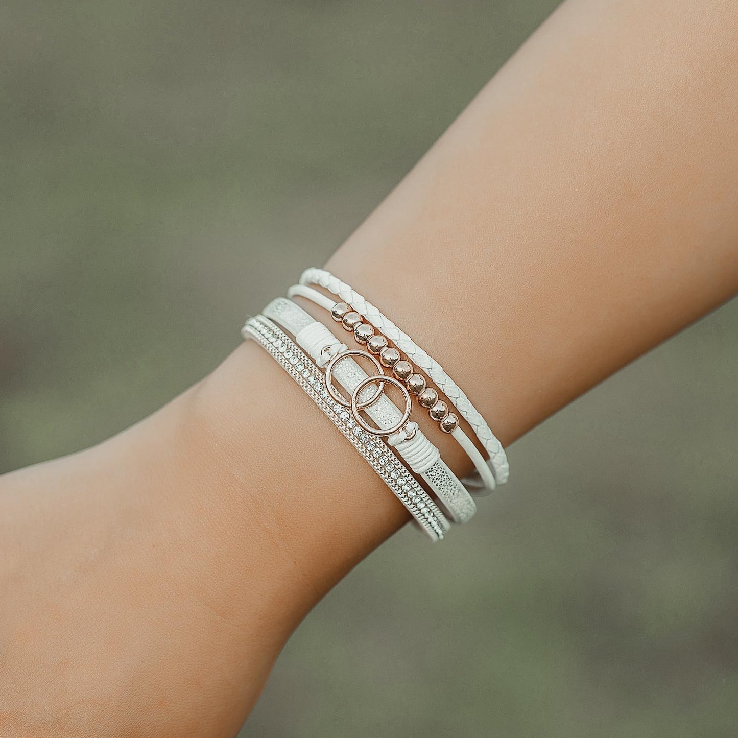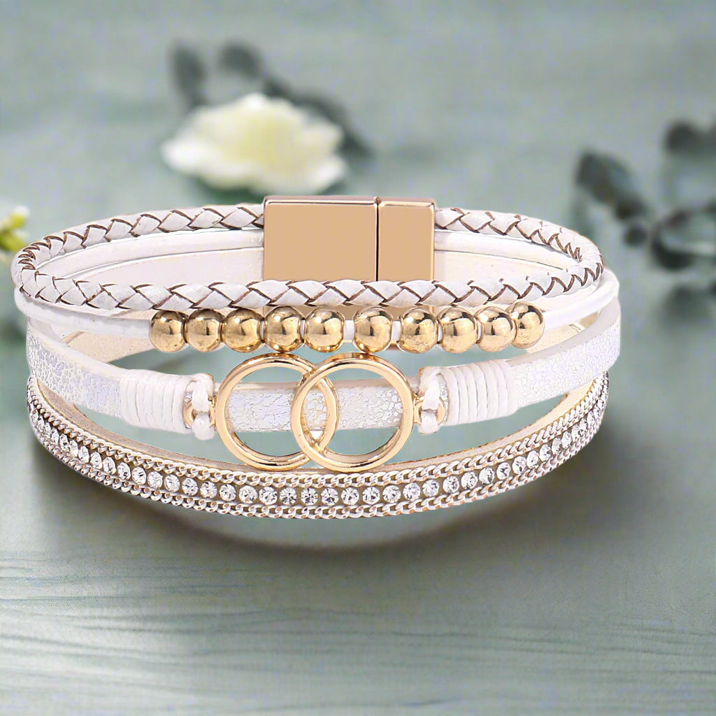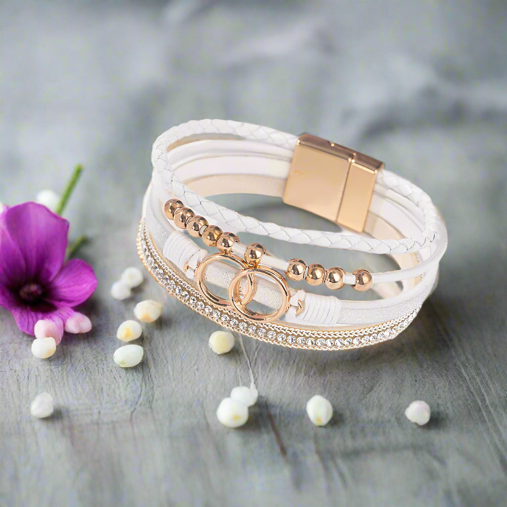 Infinite Love Boho Wrap Leather Cuff Bracelet (White)