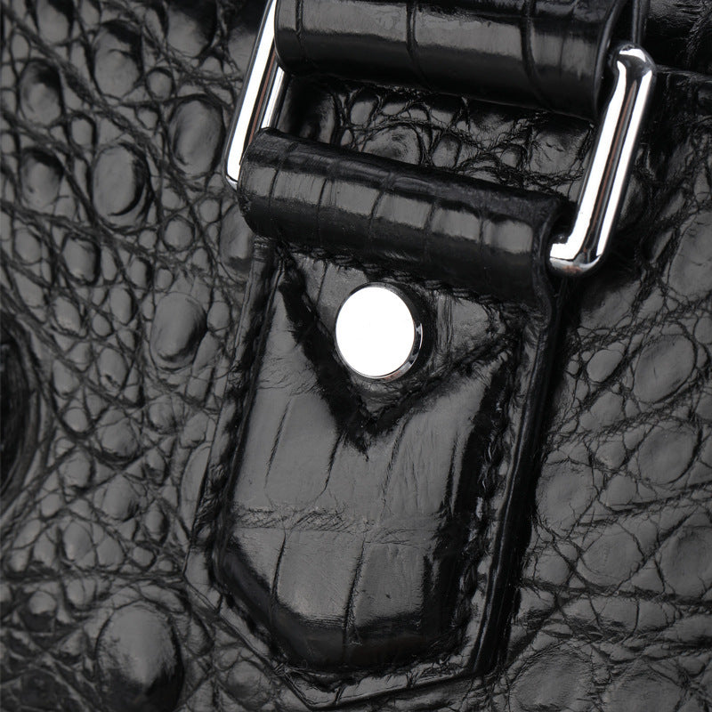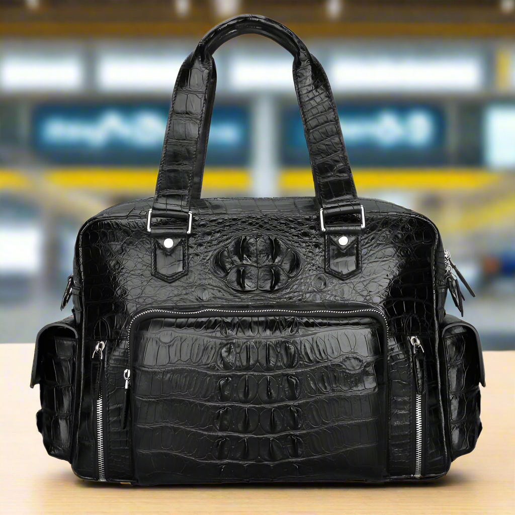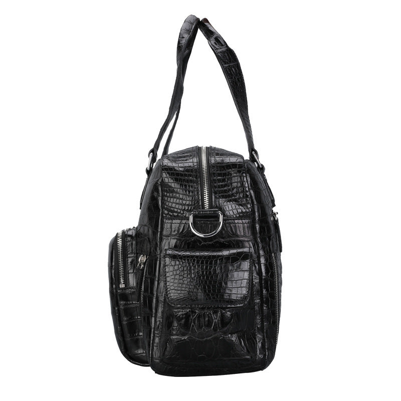 Black Multi-Pocket Leather Crocodile Texture Large Travel Bag