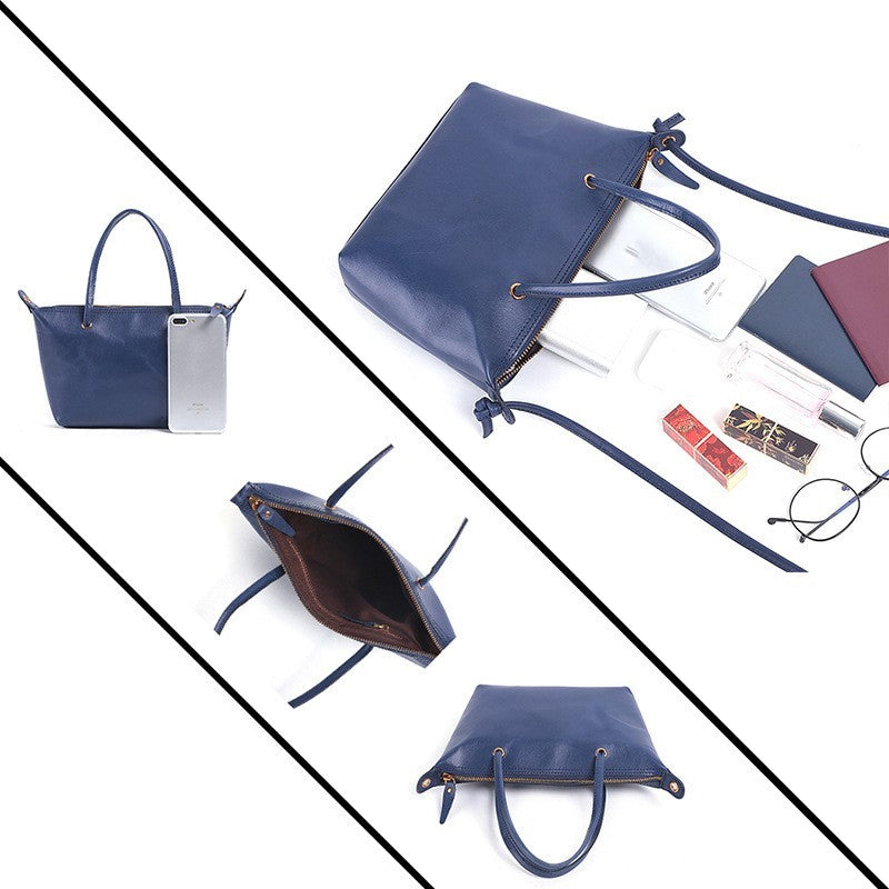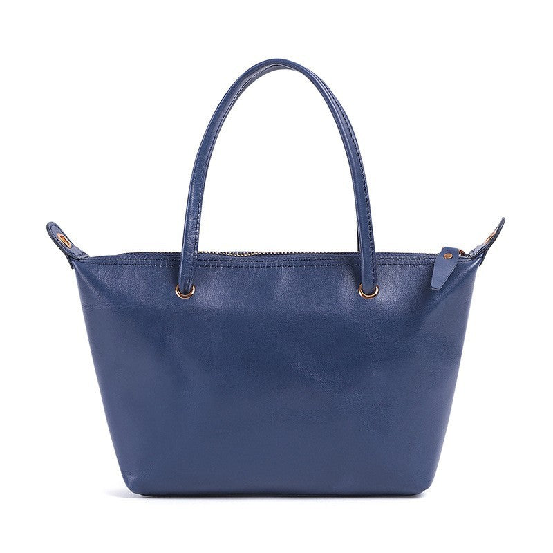 Discover the Clervaux Leather Tote from Larque. Made from genuine cowhide leather, this structured everyday handbag features a zip top and comes in Blue, Green, or Tawny Brown.