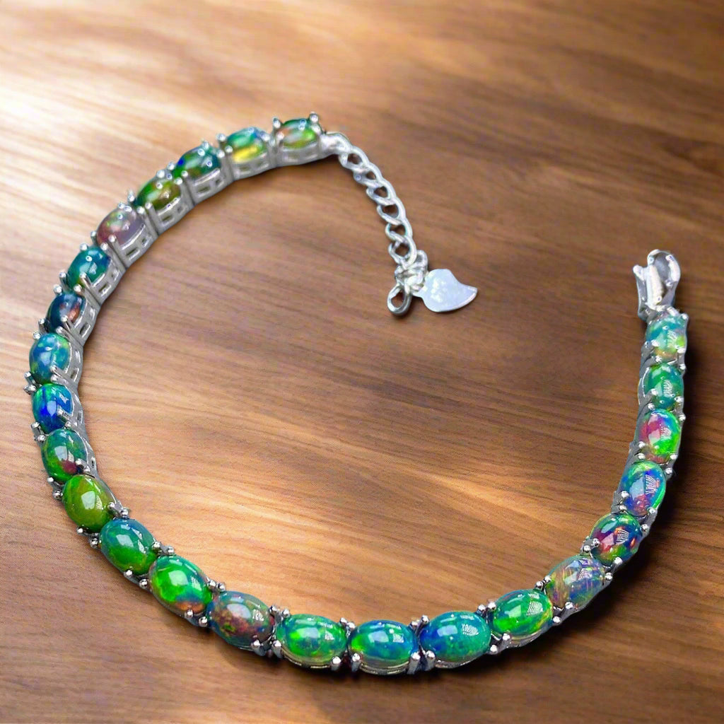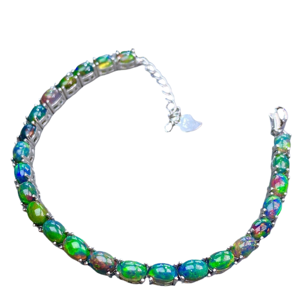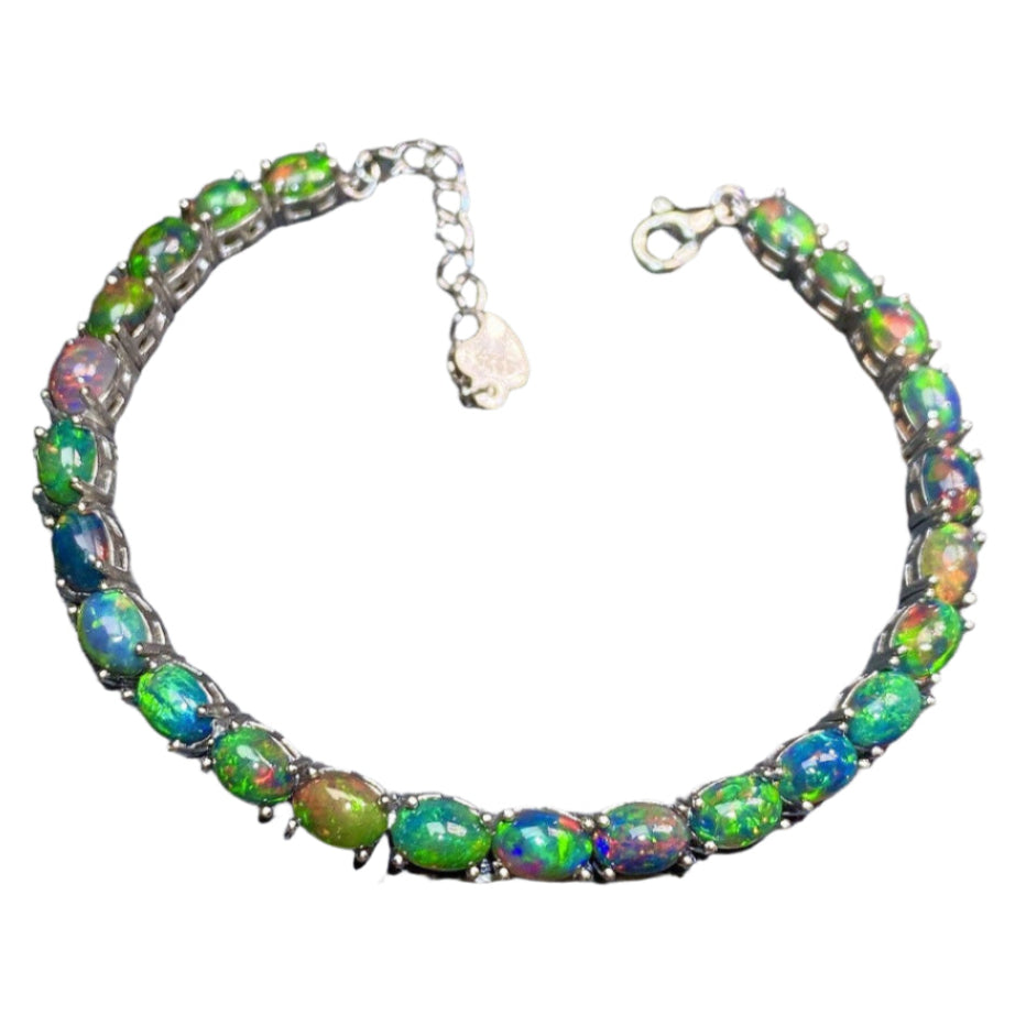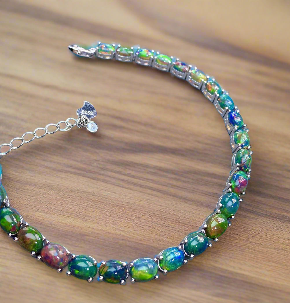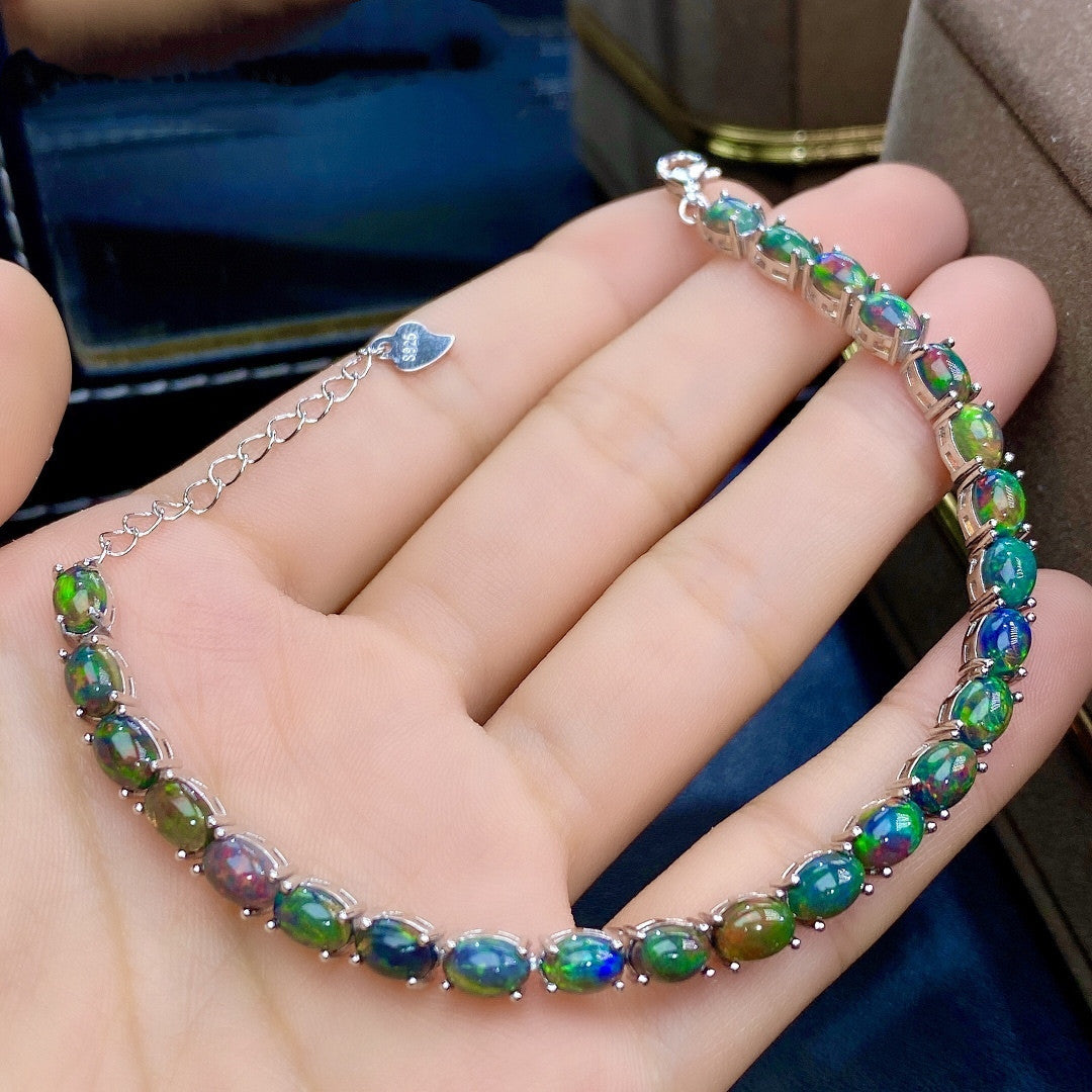 Colorful Black Opal Sterling Silver S925 Bracelet