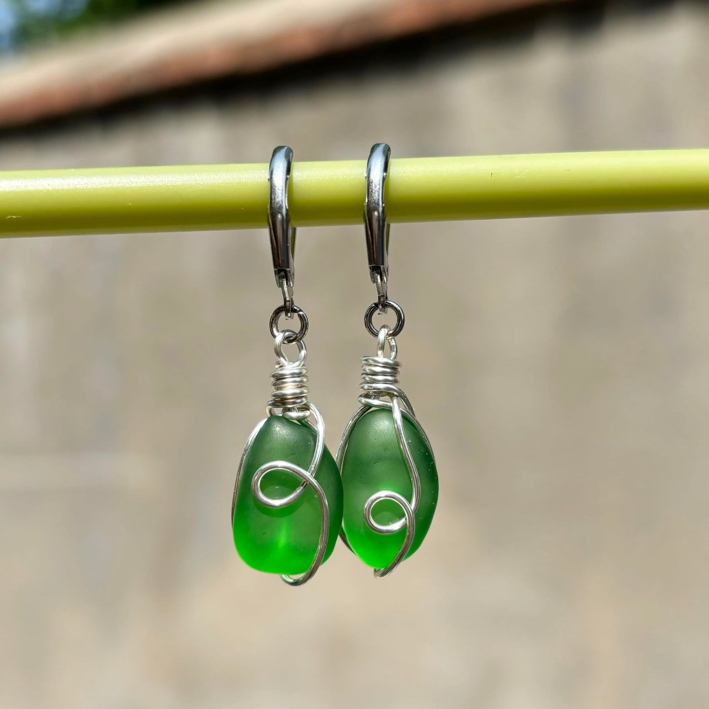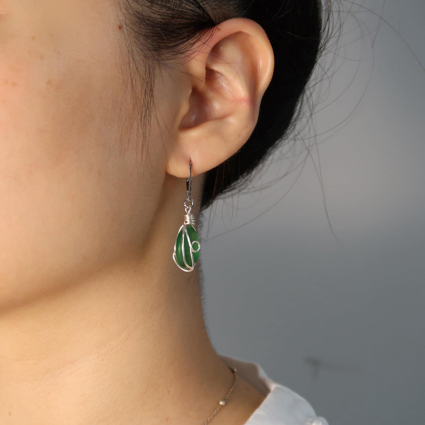 PEPELUALI Handmade Sterling Silver Sea Glass Wire Wrap Drop Earrings Jewelry (Green),Beach Earrings, Summer Gift, Ocean Jewelry Inspirational Gifts for Women, Mom, Sister