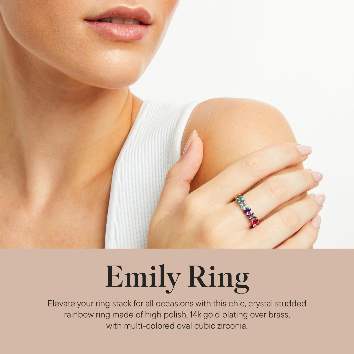 - Meet Your New Go-To Ring: The Emily statement ring turns heads with brilliant cubic zirconia studs. Wear it every day to add sparkle and color to any outfit
