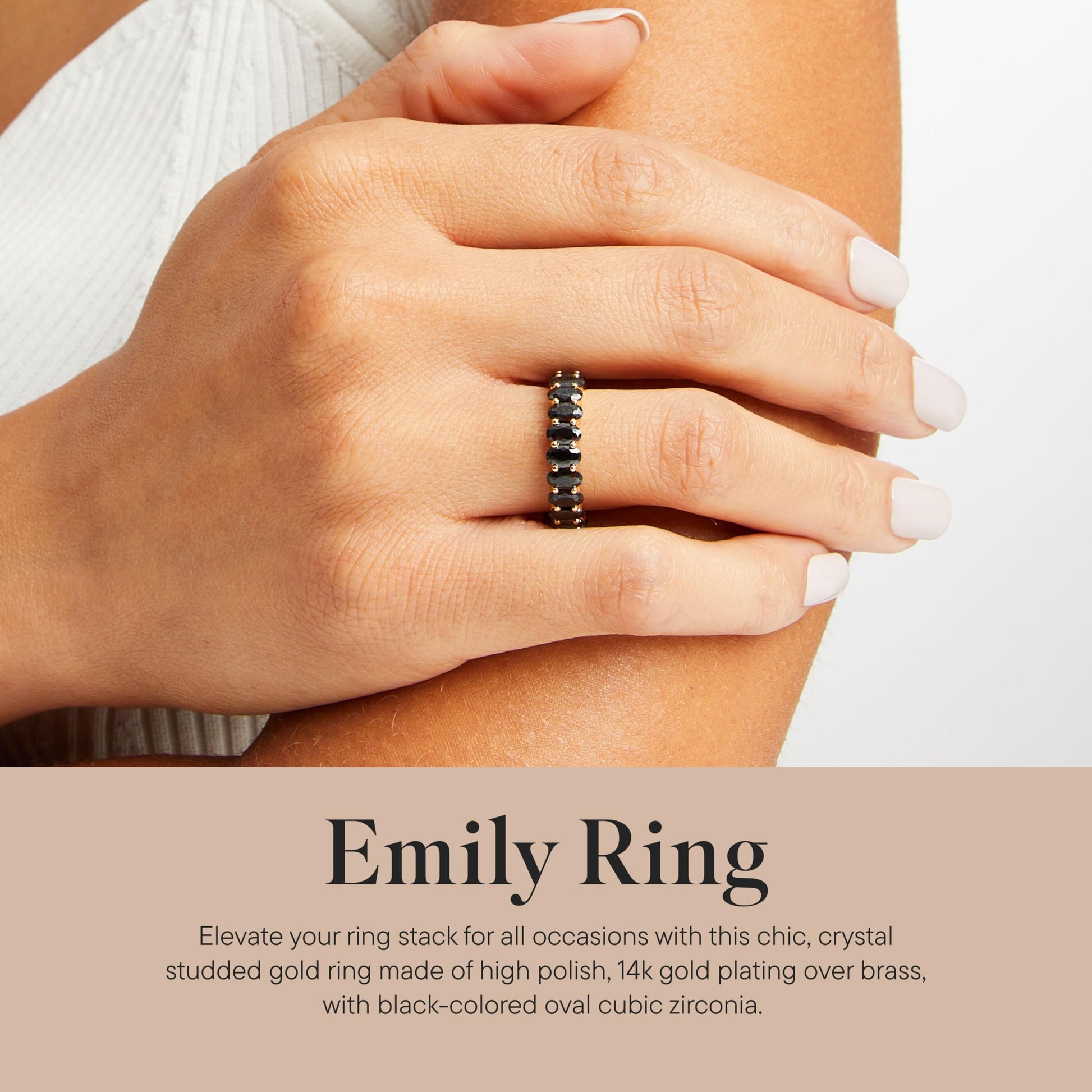 - Meet Your New Go-To Ring: The Emily statement ring turns heads with brilliant cubic zirconia studs. Wear it every day to add sparkle and color to any outfit