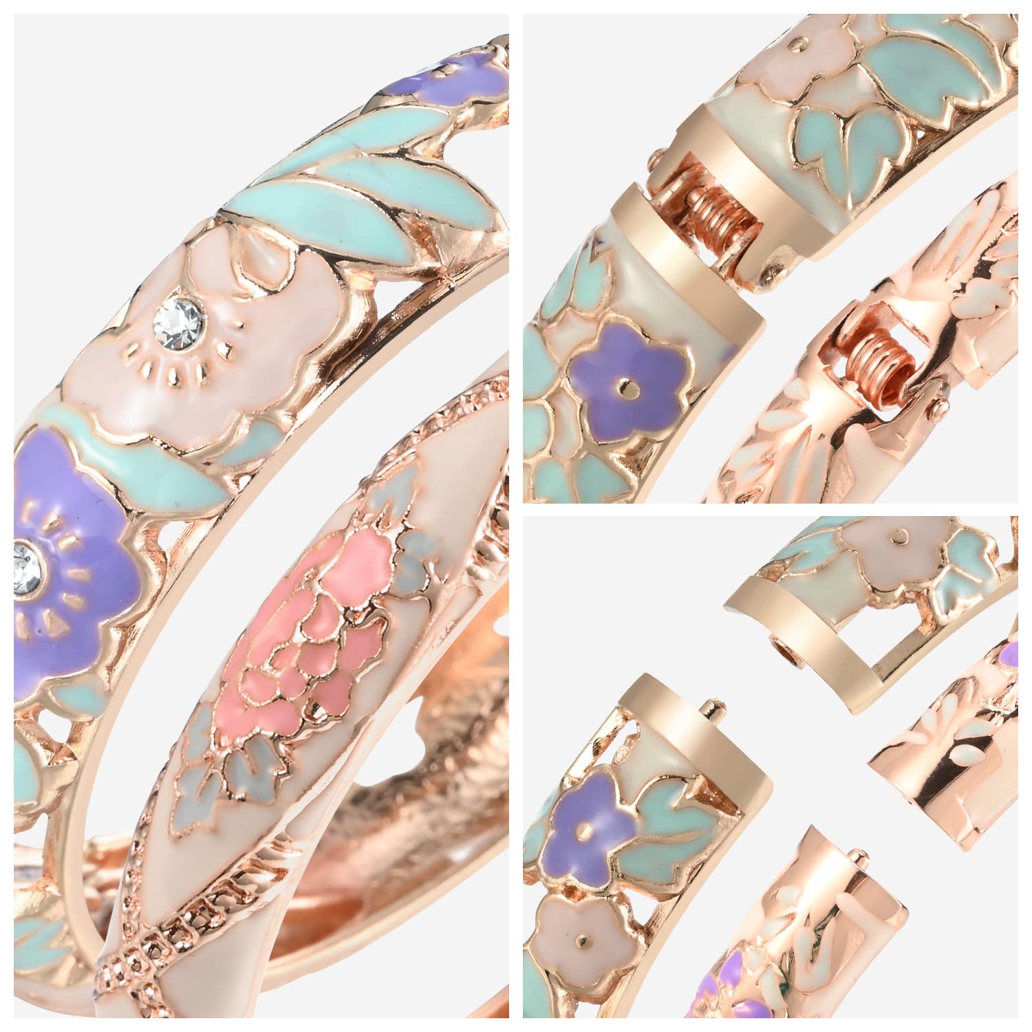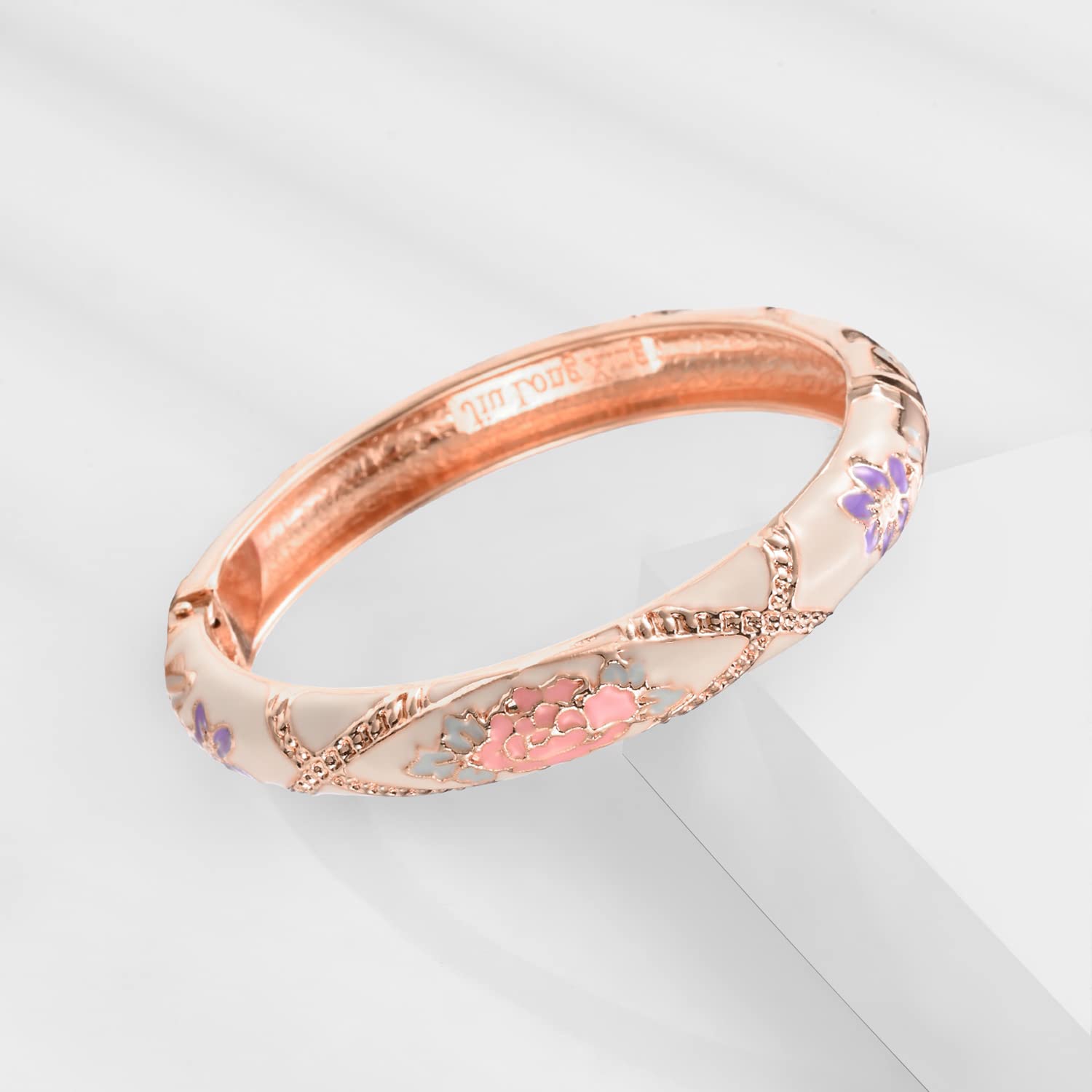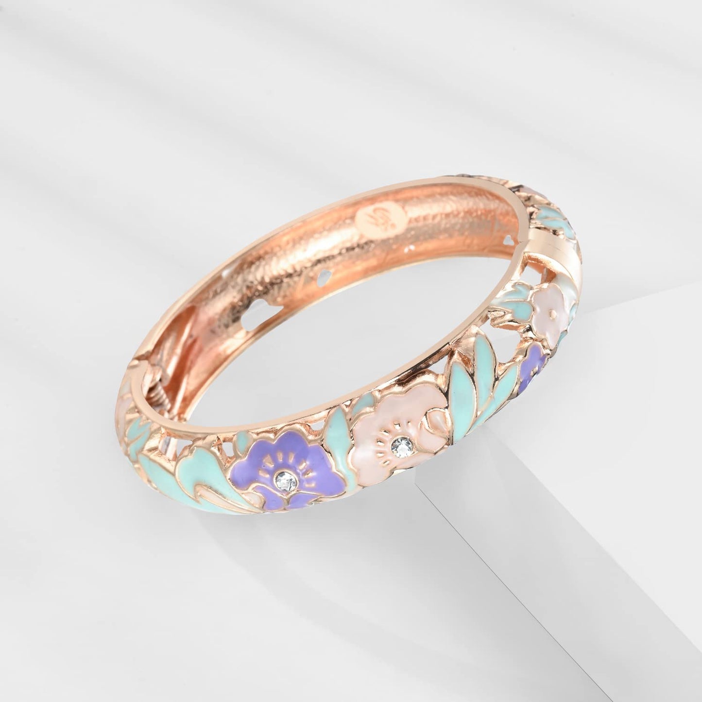 UJOY Vintage Jewelry Cloisonne Handcrafted Enameled Gorgeous Rhinestone Flower Gold Hinged Cuff Bracelet Bangles Gifts 88A08-55A128 Cream White