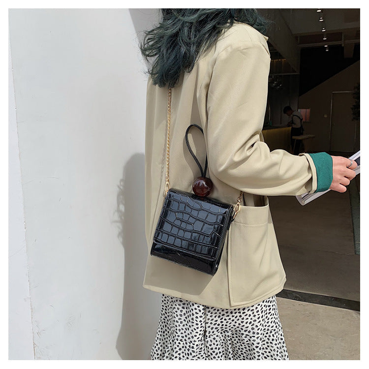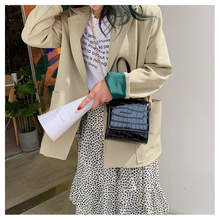 Unique Square Faux Leather Handbag with Long Strap and Convenient Wrist Handle